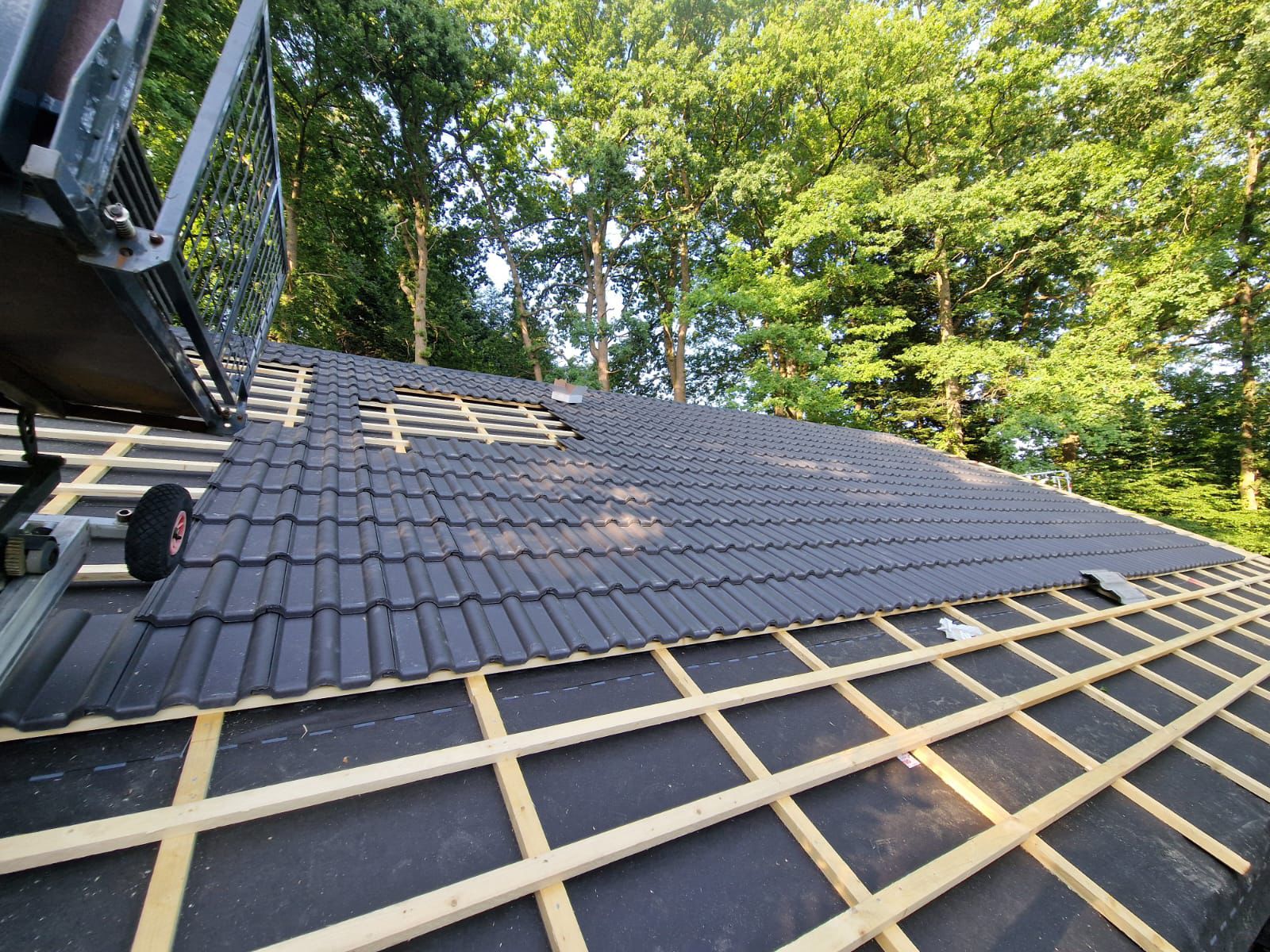 Zusätzlich zu den reinen Dachdeckerarbeiten haben wir notwendige Anpassungen im konstruktiven Holzbau vorgenommen, um die Dachstruktur für neue Anforderungen zu rüsten. Nach der Montage der neuen Konter- und Traglattung erfolgte abschließend die Neueindeckung mit hochwertigen, anthrazitfarbenen Dachsteinen. Diese verleihen dem Haus nicht nur eine moderne, frische Optik, sondern garantieren auch jahrzehntelangen Schutz vor extremen Witterungseinflüssen. Das Ergebnis ist ein rundum zukunftssicheres Dach aus echter Profihand.